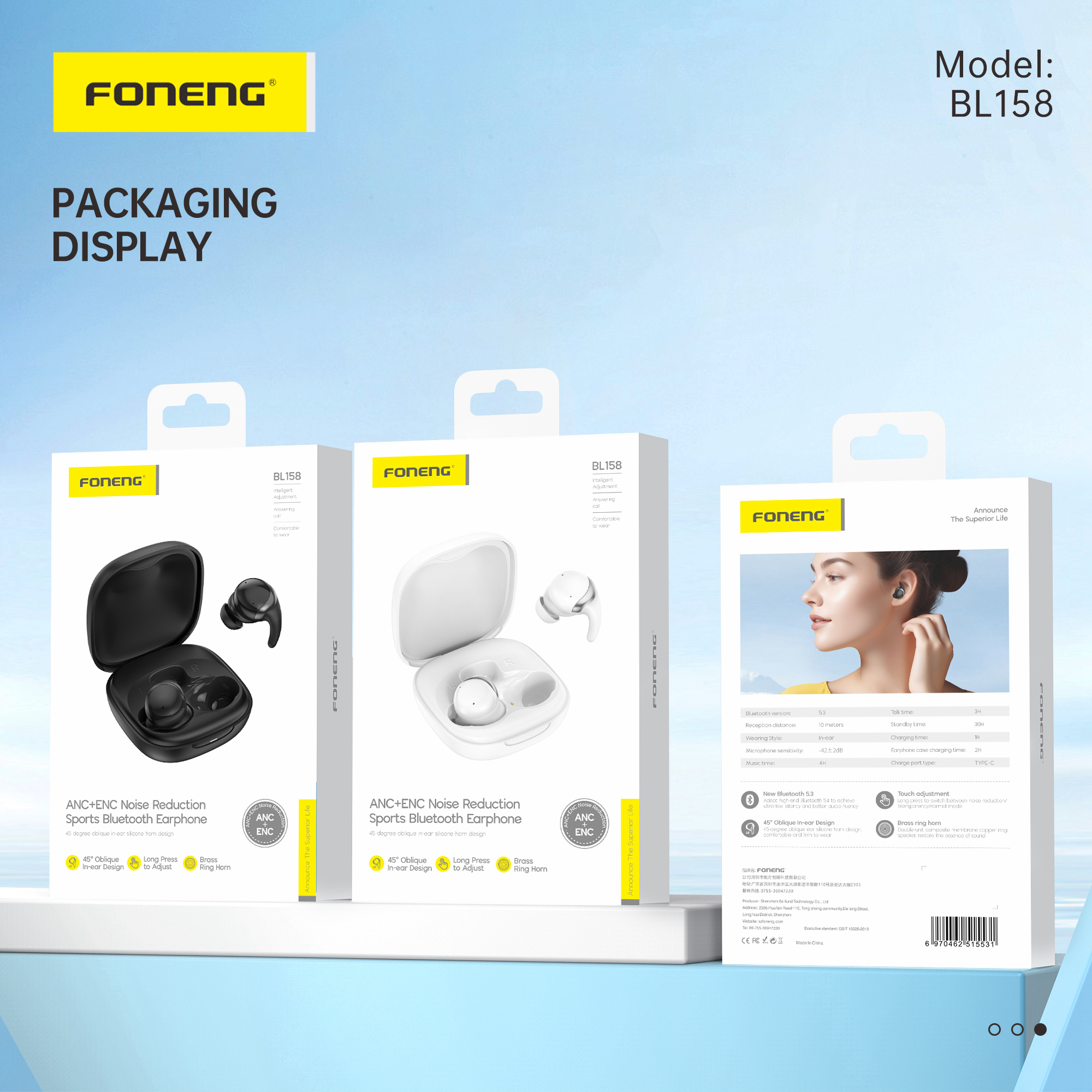 BL158 SPORT BUDS ANC+ENC WHITE